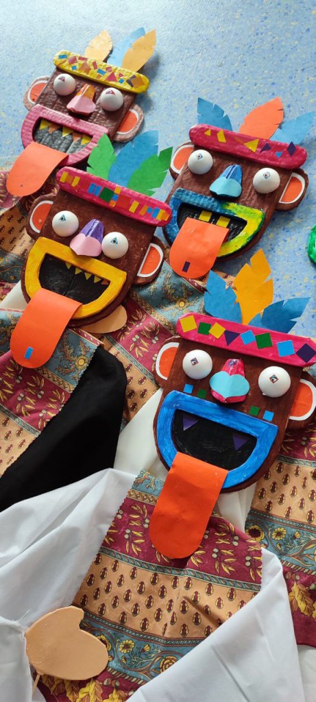 Marionnettes plates en carton et papier de couleurdessin / illustration et schéma« Lapin » Marionnettes en boules de polyéthylène« Brebis » Marionnettes en boules de polyéthylène« Croco » Marionnettes en boules de polyéthylène« Canard » Marionnettes en boules de polyéthylèneMarionnette inspiré d’un masque mexicainMarionnette-Marote inspiré du masque IncaMarionnette-Marote inspiré d’un masque africain« éléphant » Marionnettes en boules de polyéthylène / schéma et marionnette finie« Bonjour Doc » Marionnettes en boules de polyéthylène