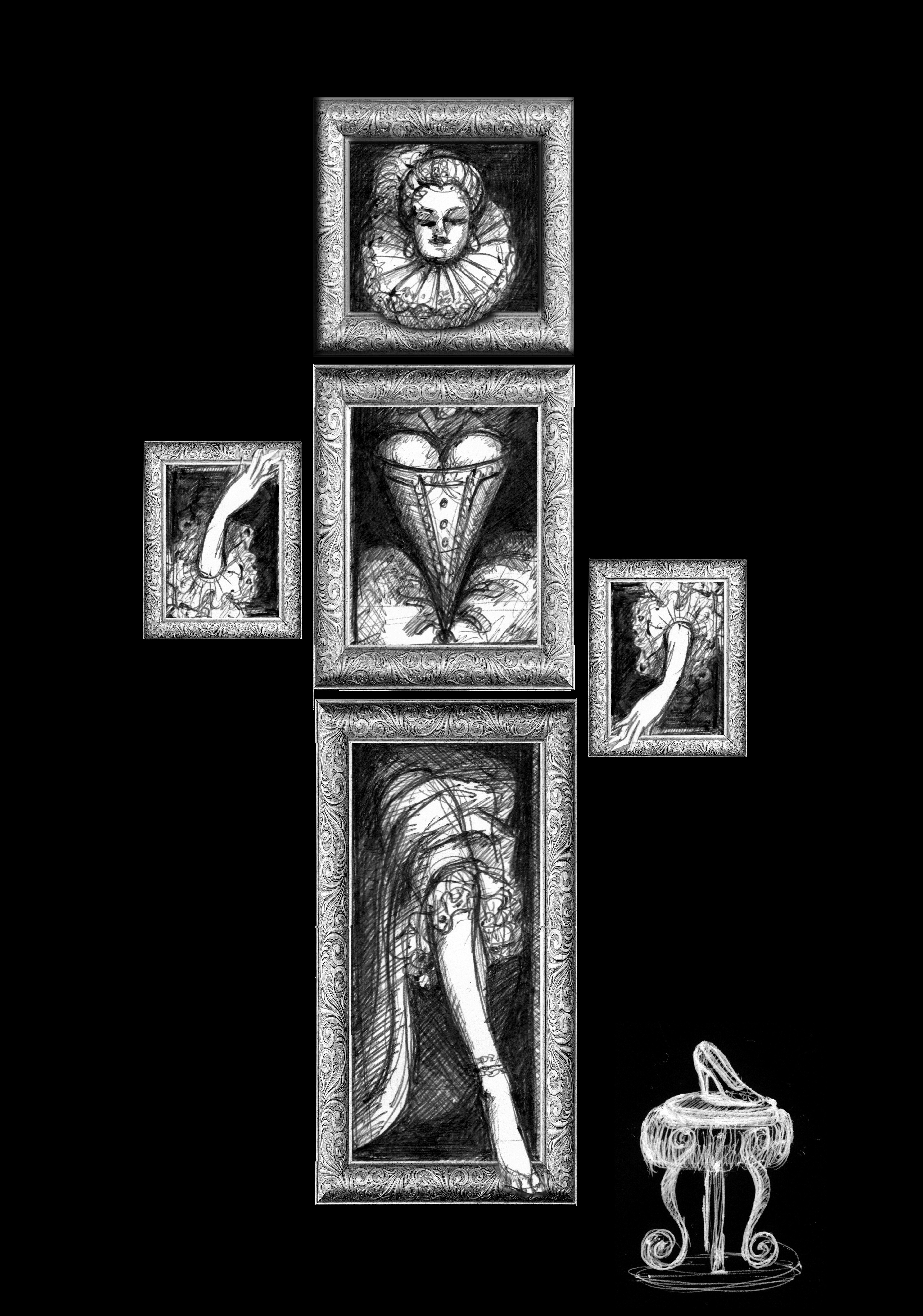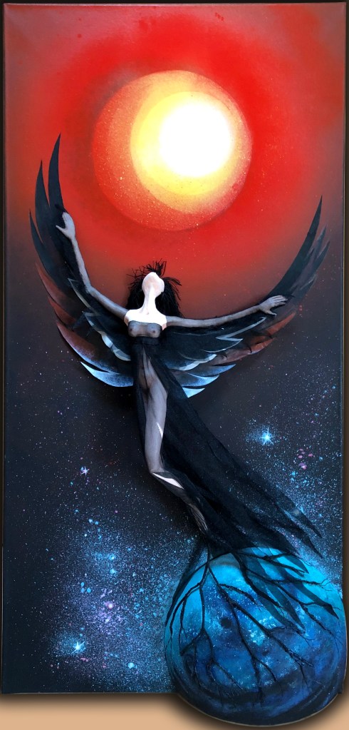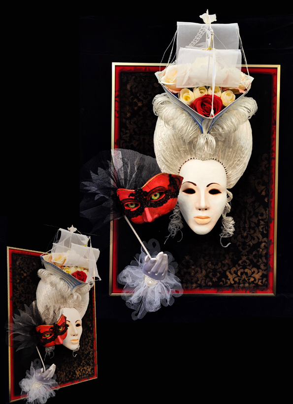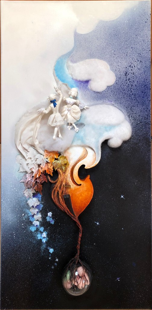 Dans mes œuvres j’utilise la technique mixte issue de mes connaissances d’art plastique et scénographique.